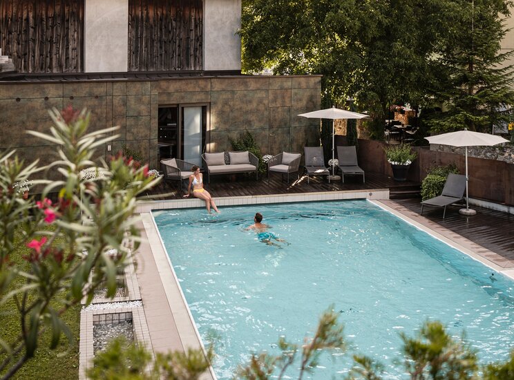 Ob beheizter In- und Outdoorpool, Wasserfall oder Kinderbecken - das kühle Nass ist unser absoluter Lieblingsplatz! Bademäntel und Schwimmflügel liegen bei uns im Matill schon für Sie bereit. Wer es lieber trocken mag: Schnappen Sie sich unsere Leih-Bikes direkt bei uns im Familienhotel in Latsch. Und wenn Mama und Papa mal Zeit zu zweit brauchen? Dann bieten unsere weitläufigen Ruheoasen den perfekten Rückzugsort für neue Energie und Zweisamkeit.