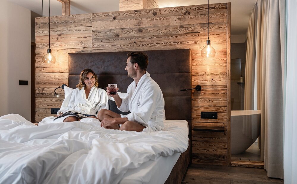 - 1 gemeinsames Holzschafflbad im Private-Schlössl-Spa und anschließend romantisches Kuscheln auf dem Vinschger Himmelbett mit süßen Schokofrüchten bei Kerzenschein und einem Gläschen Sekt