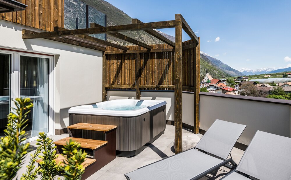 Hotelzimmer mit Whirlpool im Vinschgau