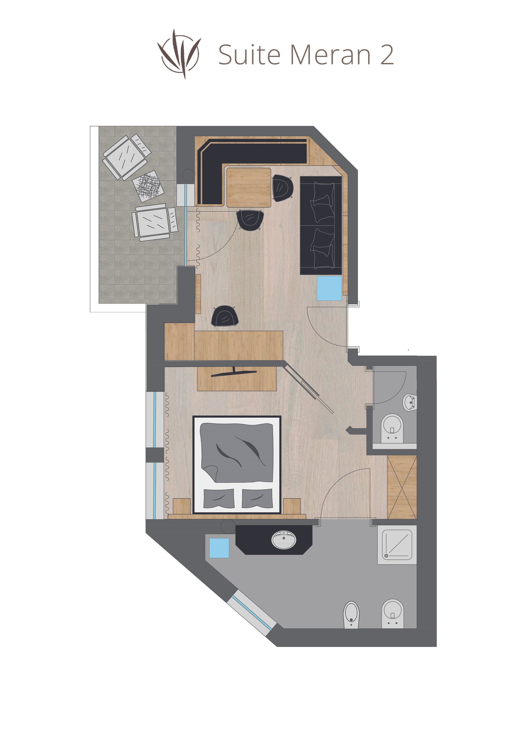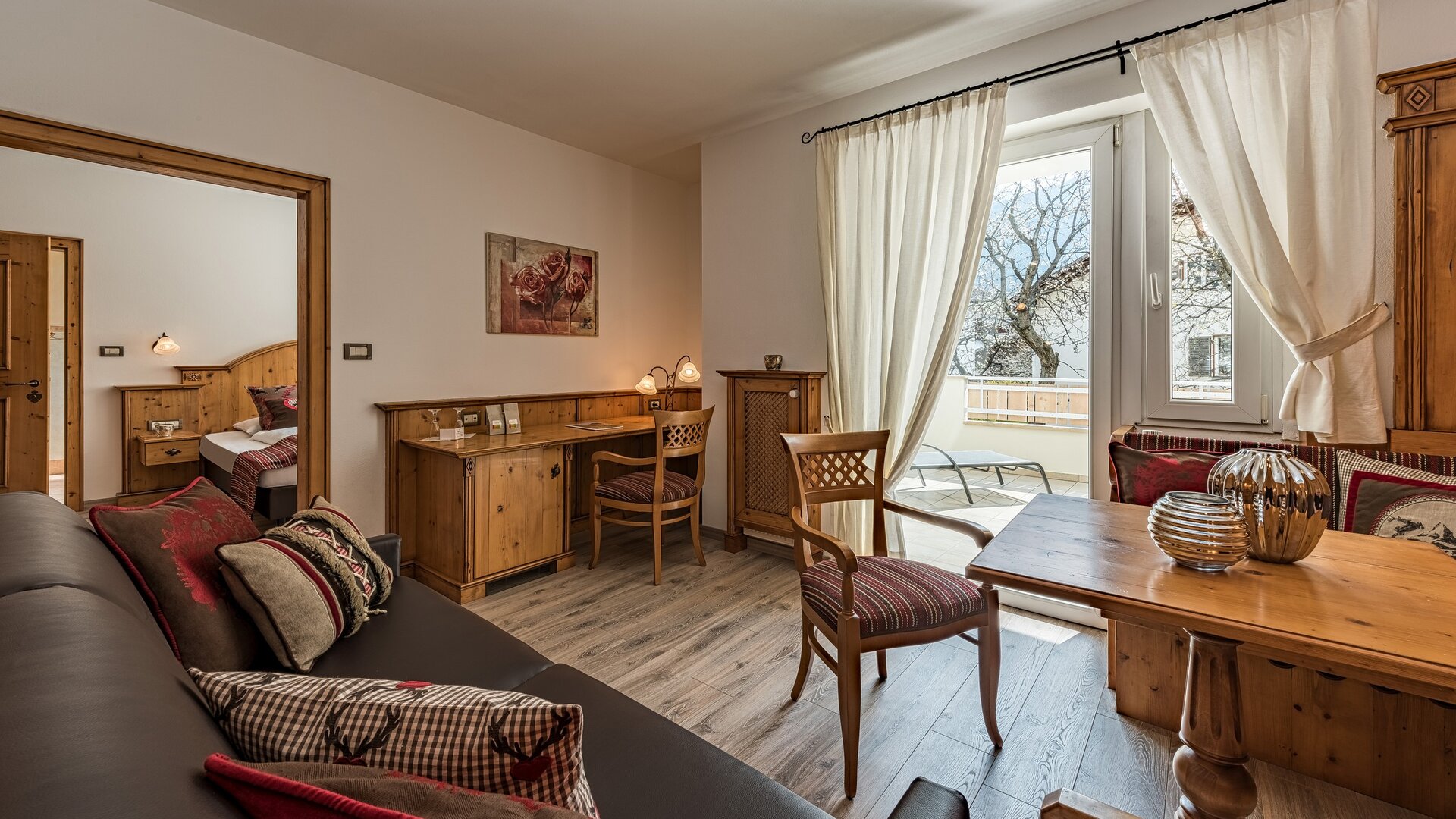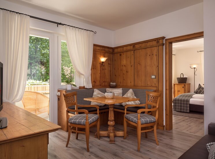 Die Suite Meran vereint ruhiges Wohnen mit Charakter. Edle Holztäfelung und harmonische Farben schaffen in dieser feinen, kompakten Suite ein Ambiente voller Geborgenheit. Ein lichtdurchfluteter Erholungsraum für bewusste Auszeiten im sonnigen Vinschgau - ideal zum Ankommen, Durchatmen und Genießen.