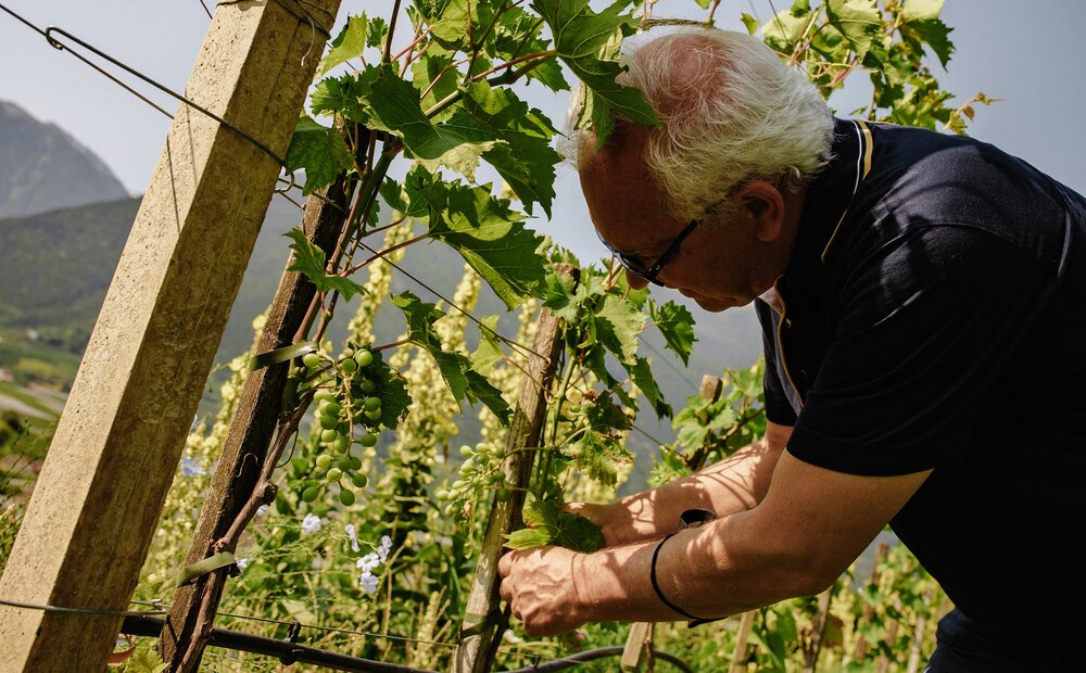 Wein aus dem Vinschgau hat Geschichte: Schon die Römer schätzten die sonnigen Terrassen, die heute als DOC-Zone höchste Qualität garantieren. Als Teil der Vinum Hotels Südtirol leben wir echte Weinleidenschaft in einem der aufstrebendsten Weinbaugebiete des Landes. Unser eigener Weingarten macht das Erlebnis im Matill komplett. Hansjörg sagt: "Jede Rebe in unserem Weinberg erzählt von den Händen, die sie gepflegt haben - seit Generationen."